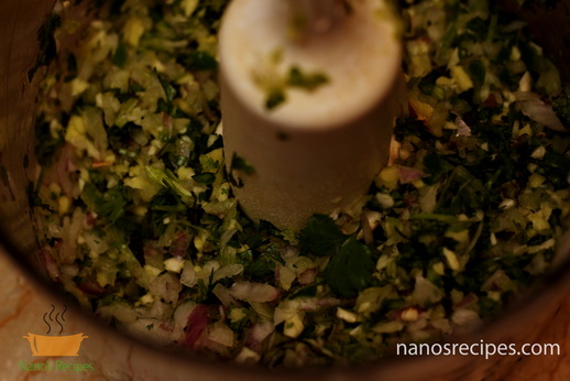 - Chop onions, green chilies, garlic, ginger, coriander leaves, spring onions. If you are using Beef then chop it as well