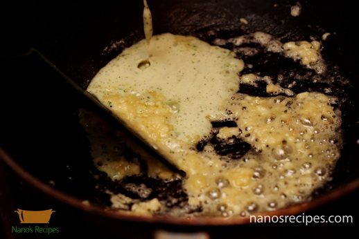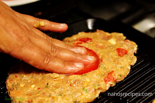 - Ad corn meal, wheat flour, corn flour, eggs, two chopped tomatoes, Annar Dana and butter