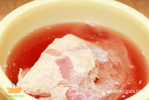 - Mix Baking Soda in vinegar and water. Soak the piece of beef in it for an hour