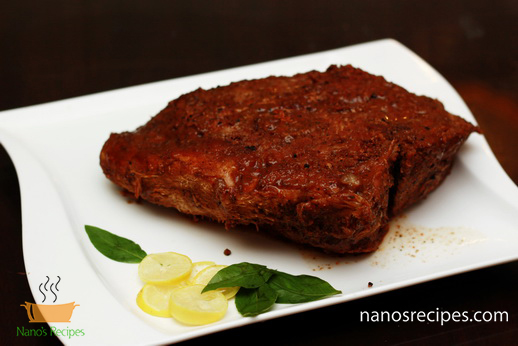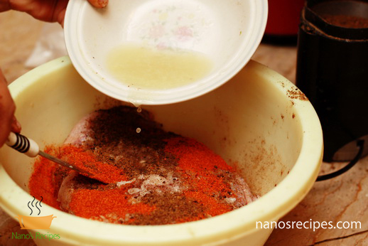 - Place this marinated beef in the refrigerator and let it marinate for at least 24 - 36 hours. With regular intervals prick the meat and add lemon juice on each side. Repeat this 2 - 3 times while the meat is marinating. This step is necessary so that the spices go inside the meat