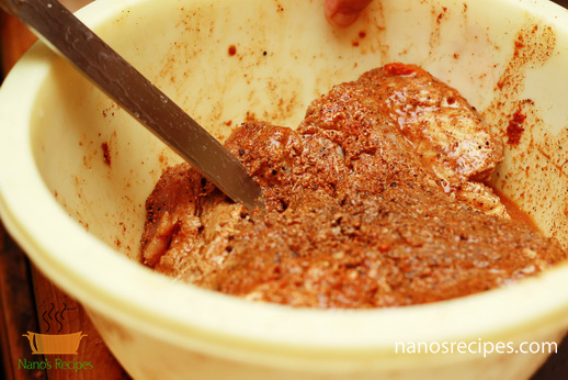 - Turn over the side and apply rest of spices and 1/4th cup of lemon juice