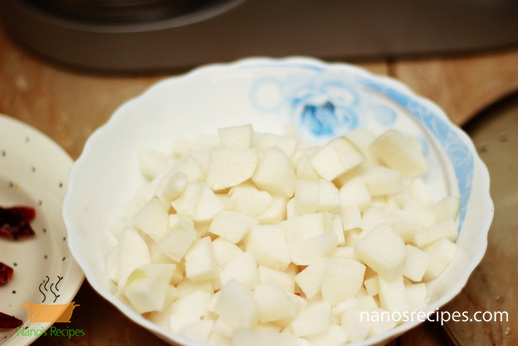 - Wash the reddish, peel it off and then cut in cubes.