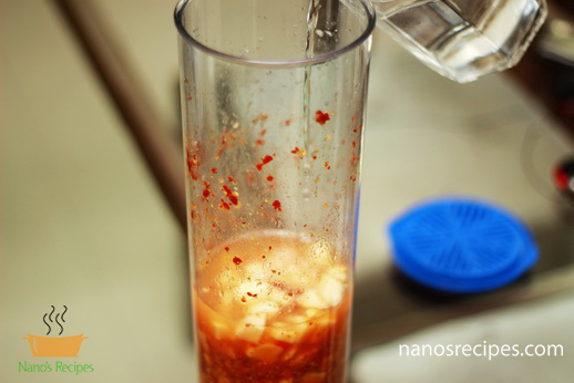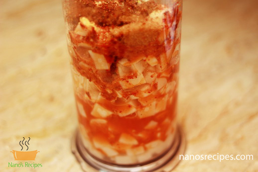 - Blend, red chillies, garlic cloves with some water. Add crushed mustard seeds and brown sugar