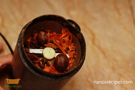 - Grind all the spices mentioned in ingredients "For Marination" except for lemon juice, ginger paste, garlic paste, olive oil and yogurt