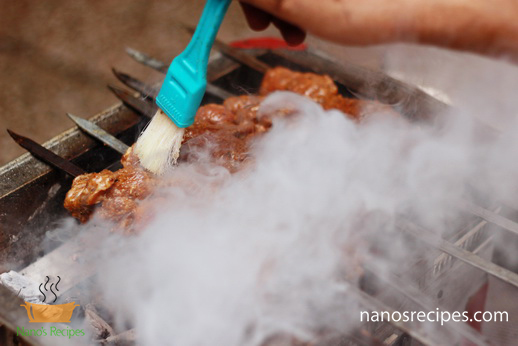 - After few minutes flip the skewers and brush again
