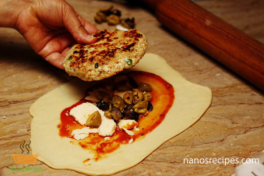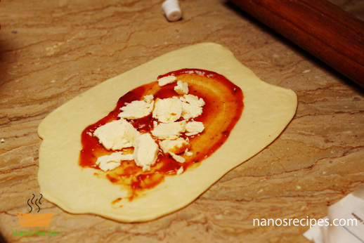- Roll out each half, apply some italian sauce or pizza sauce and add some cheese, you can also use some mustard paste if you desire . P.s Pizza Sauce recipe can be found in deep dish pizza recipe given below in recipe notes)