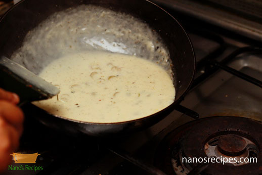15. Remove from heat, add milk and mix well. Cook till thick