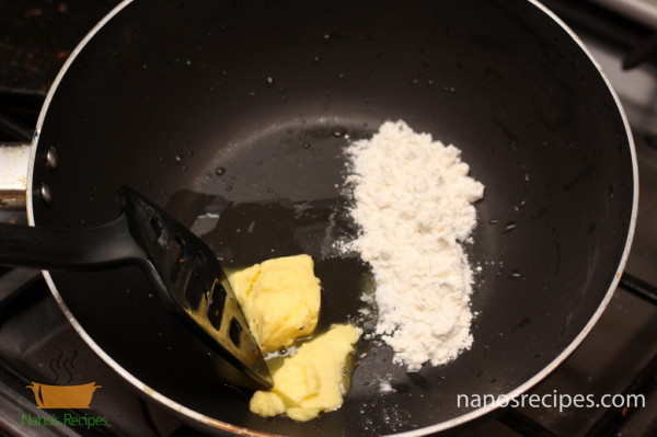 - Now in a pan, heat 1 tablespoon butter and 1 tablespoon flour.