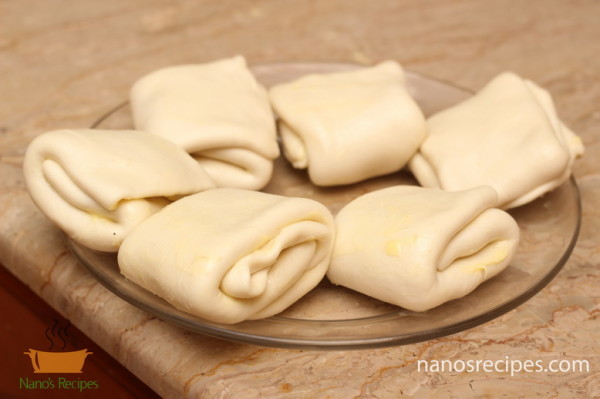 - Fold it into a square shape as shown in the images by applying the butter mixture into each fold.