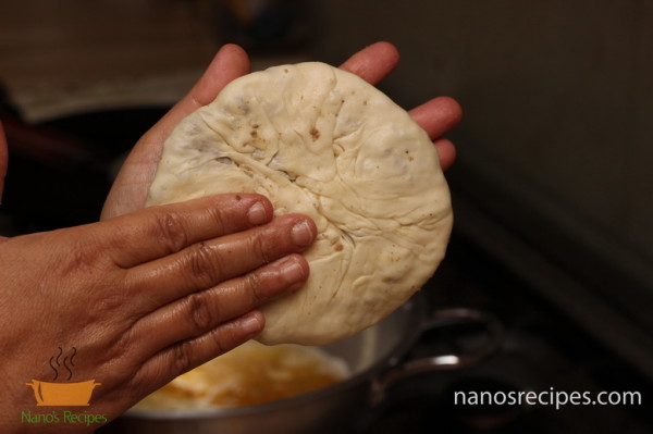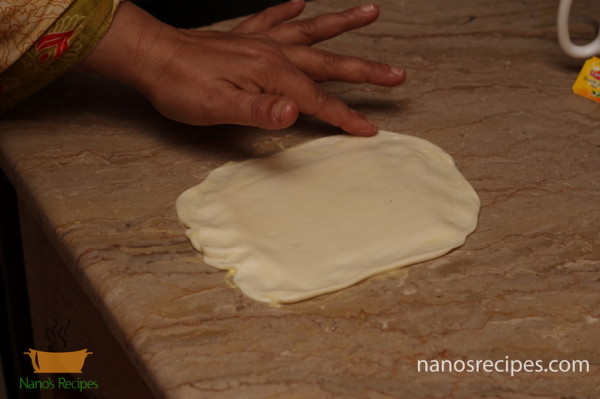 - Slightly roll out the dough and using your finger tips tap the edges to make them thinner