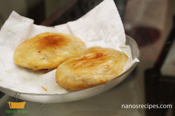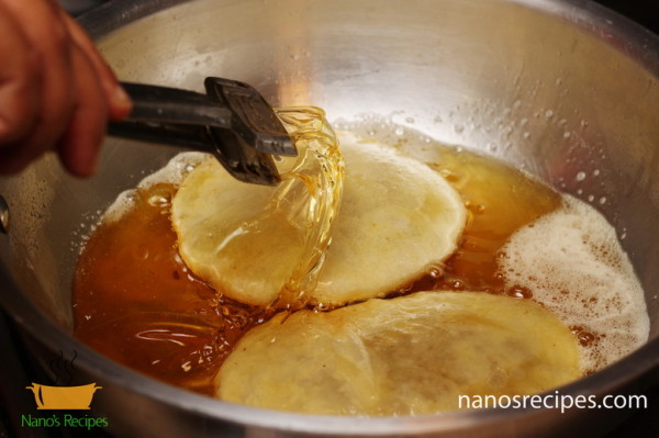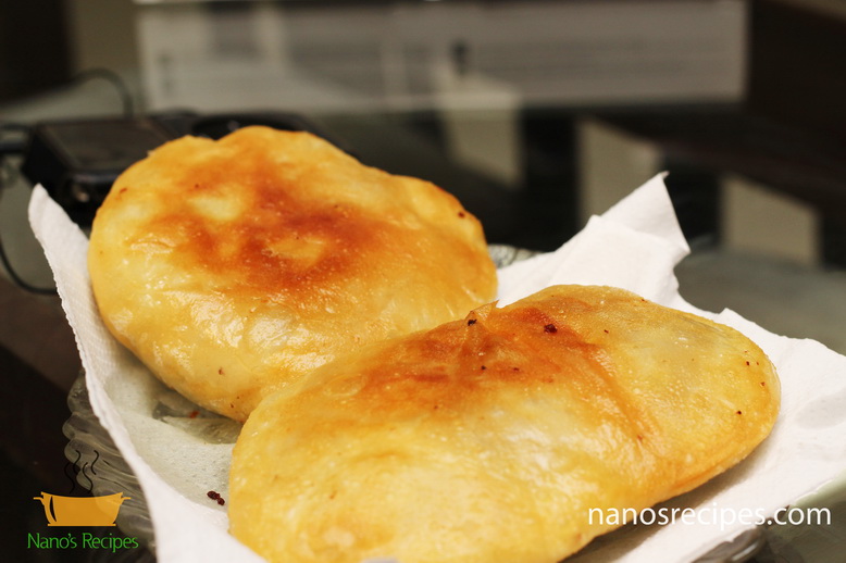 - Fry the kachorees by placing the sealed end at the bottom. Toss oil on top frequently so that the layers on the top side are also cooked. Flip the side after the bottom side is done.
