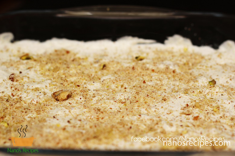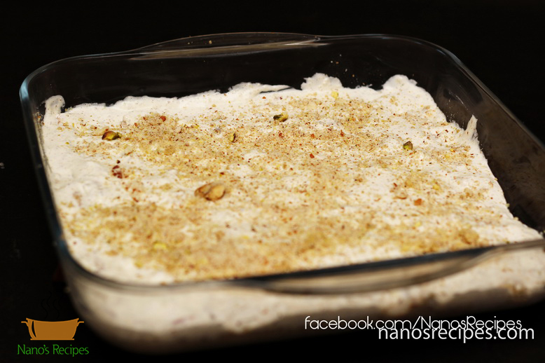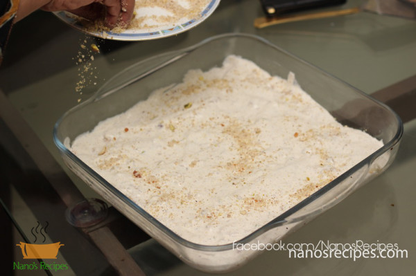 9. Beat cream with 2 Tablespoons of sugar that you ground with cardamons and the remaining nuts