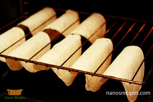 - When you want to make tacos preheat your oven to 200 degree C. Dampen the tortilla and set them on wire rack as shown in the image