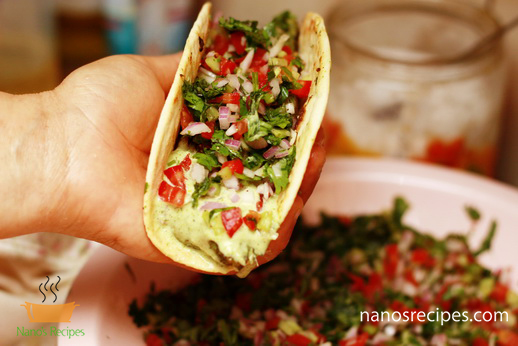 This recipe will hit right home since its Mexican. Just looking at the ingredients list will make your mouth water. We posted the Steaks recipe earlier. These Tacos are made with those steaks with a yummy sauce and fresh veggie salad on top. We hope you’ll give these a try.